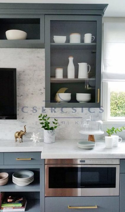 Vannak természetesen kivételek, melyekről szót kell ejtenünk. Ilyen például az üveges szekrény, ahol belátni az üveg mögé, így egyáltalán nem mindegy a színválasztás. Ugyanez igaz a nyitott szekrényeknél is, ahol ha a korpusz nem fehér, akkor egy fehér hátfal nagyon le tudja rontani az összképet.