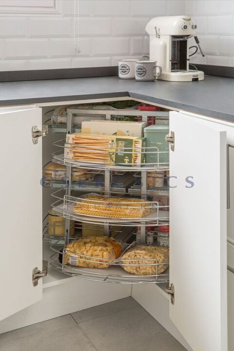 A gondosan kialakított konyha ideális mennyiségű munkapultot és konyhaszekrényt biztosít, a konyhák legtöbbjében pedig a különböző “L, U, vagy G formájú” kialakítások miatt fontos szerep jut a sarokszekrényeknek, mind az alsó-, mind a felsőszekrény esetében.