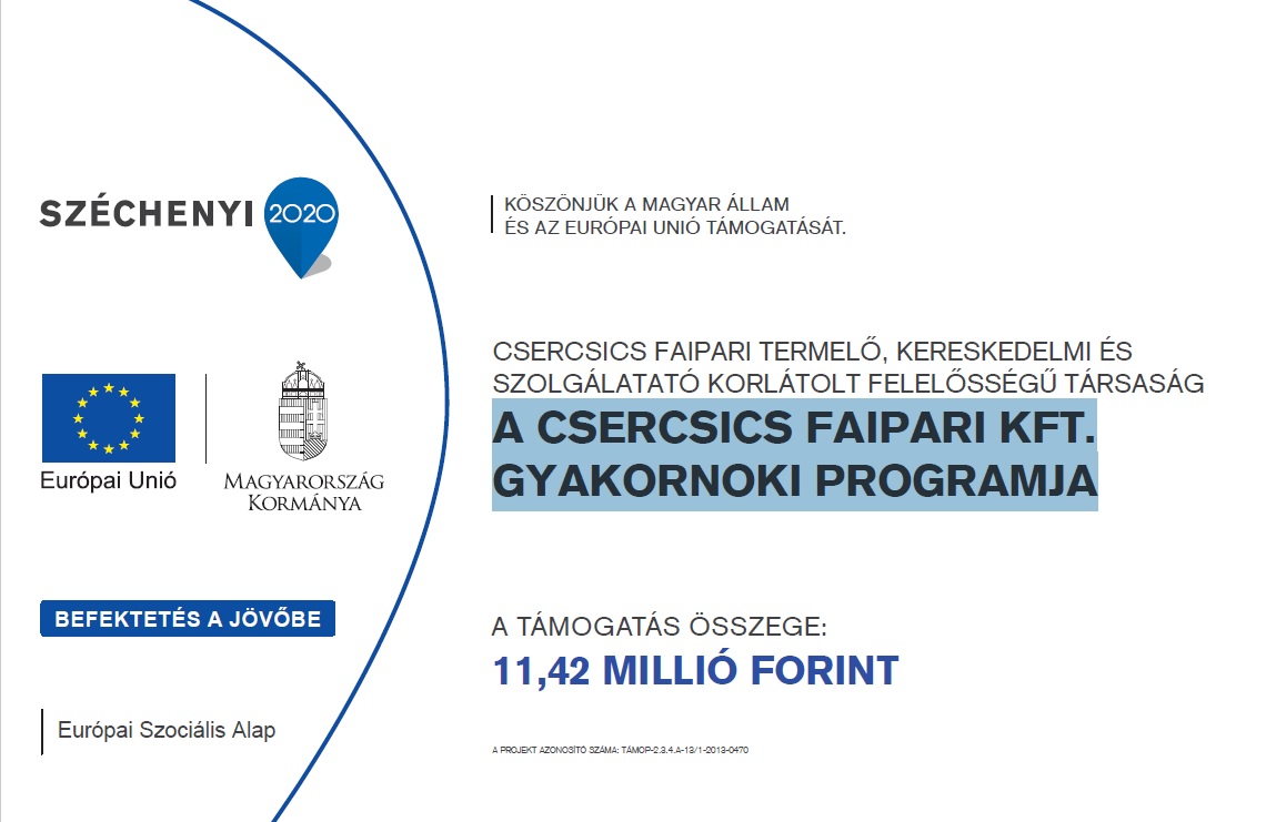 SZERZŐDŐ NEVE: Csercsics Faipari Termelő, Kereskedelmi és Szolgáltató Korlátolt Felelősségű Társaság