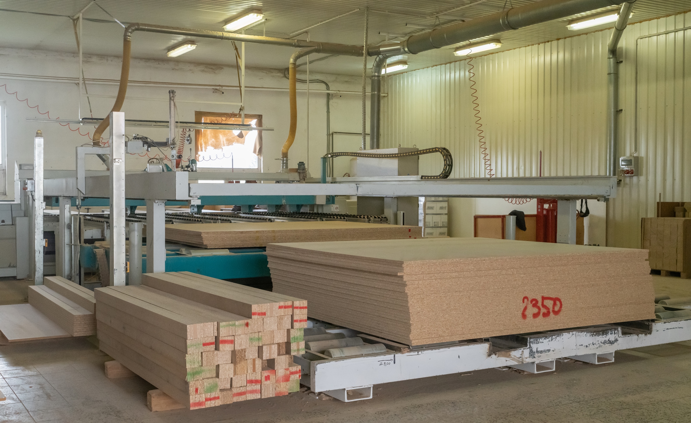 Stáfligyártás egyik alapillére, egy 60m2 alapterületet igénylő Giben táblafelosztógép: